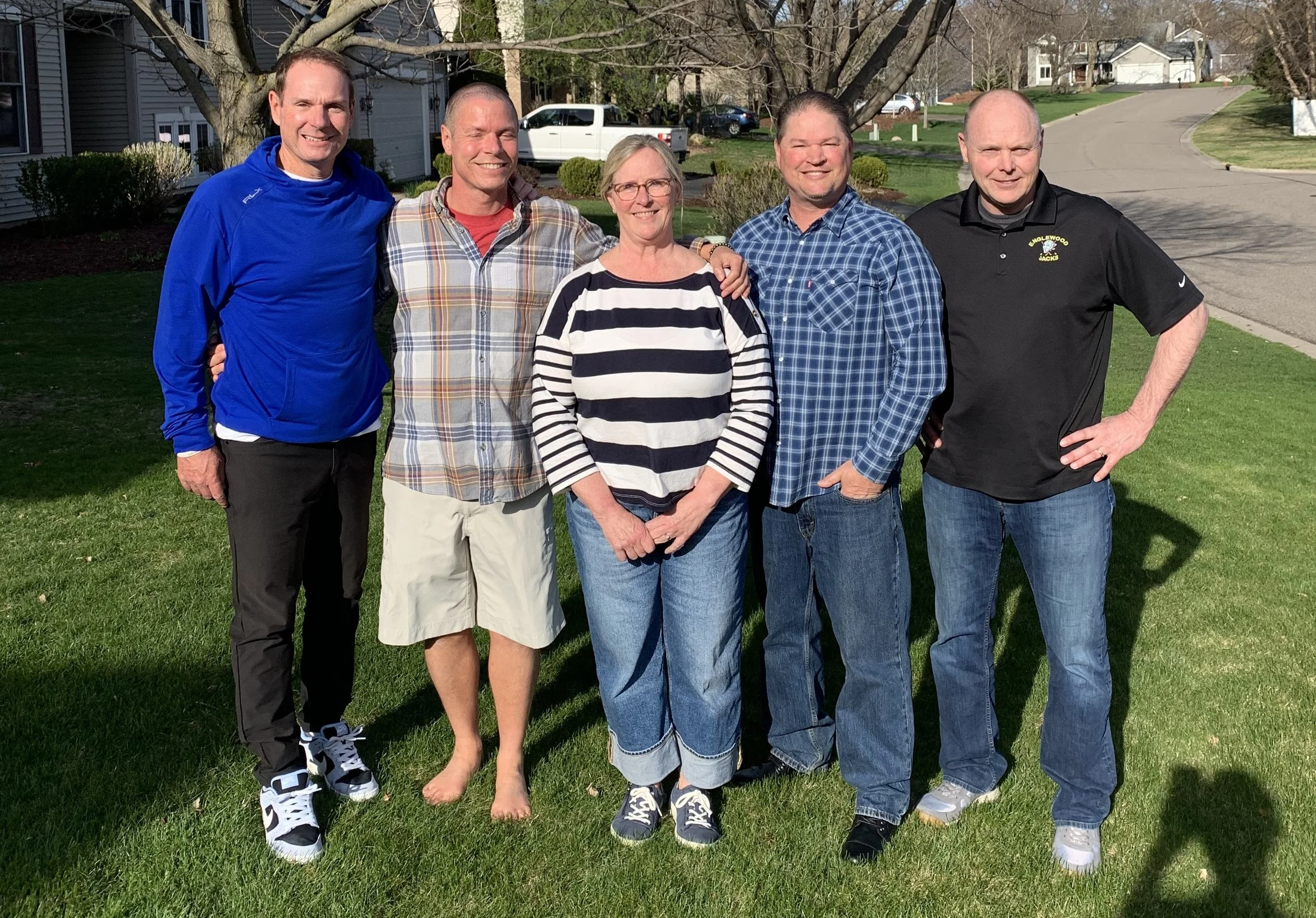 At my dad’s 85th birthday party in April, I got to see lots of relatives and friends. Here is a pic of me with my brothers and a few cousins. Left to right: Mike, me, Kris, Steve, Paul.